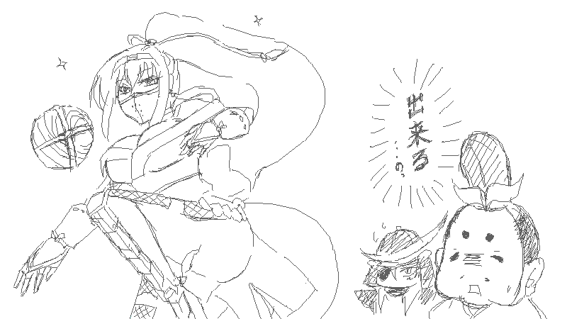 一昨日籠もった時になんとなく描いてた落書き載せて退散。