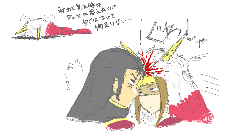 何故か左近たんに思いっきり頭突きする殿の図を描きたくなった。